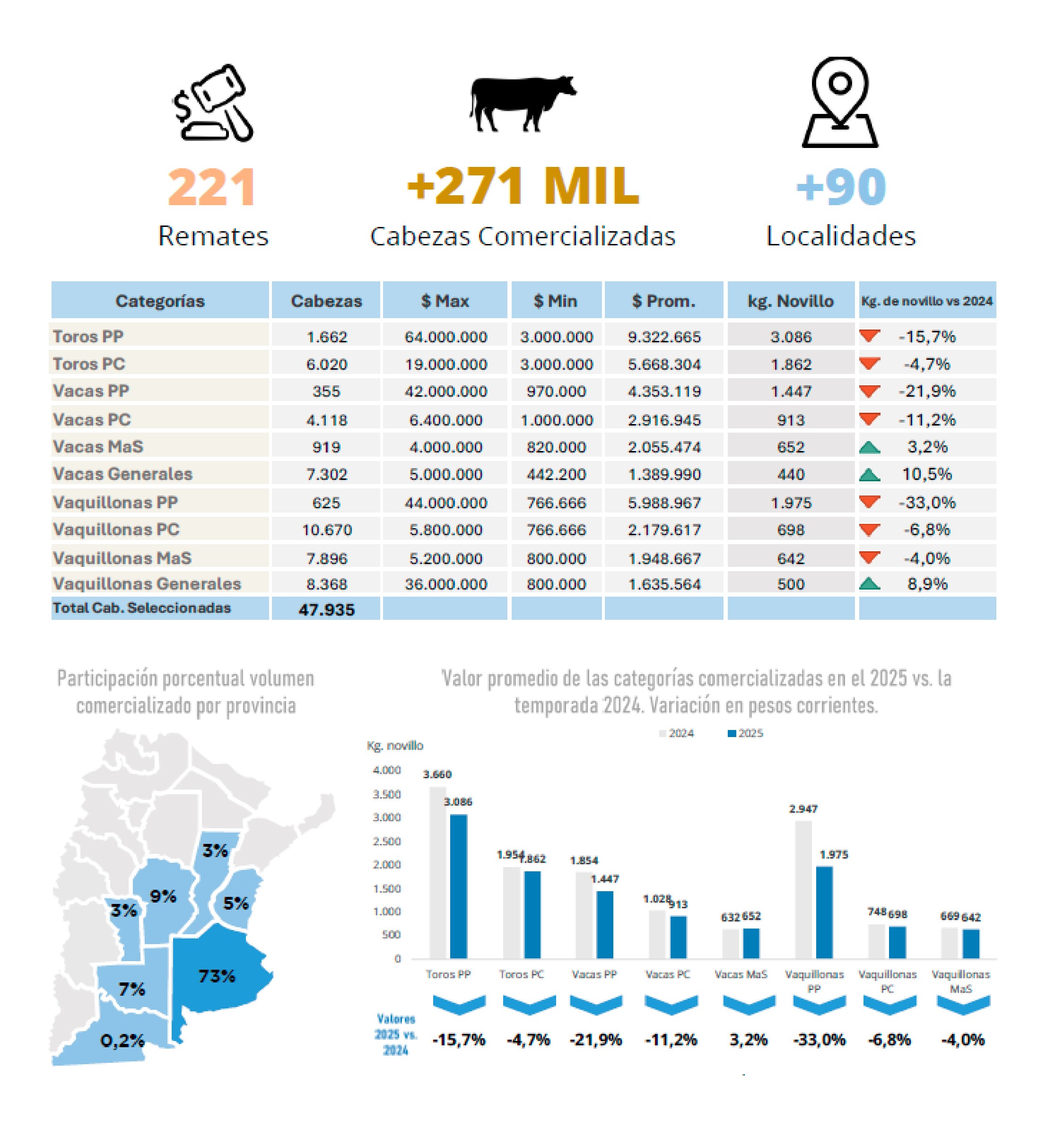 VOLUMEN Y COTIZACIONES PURO PEDIGREE. TEMPORADA 2025