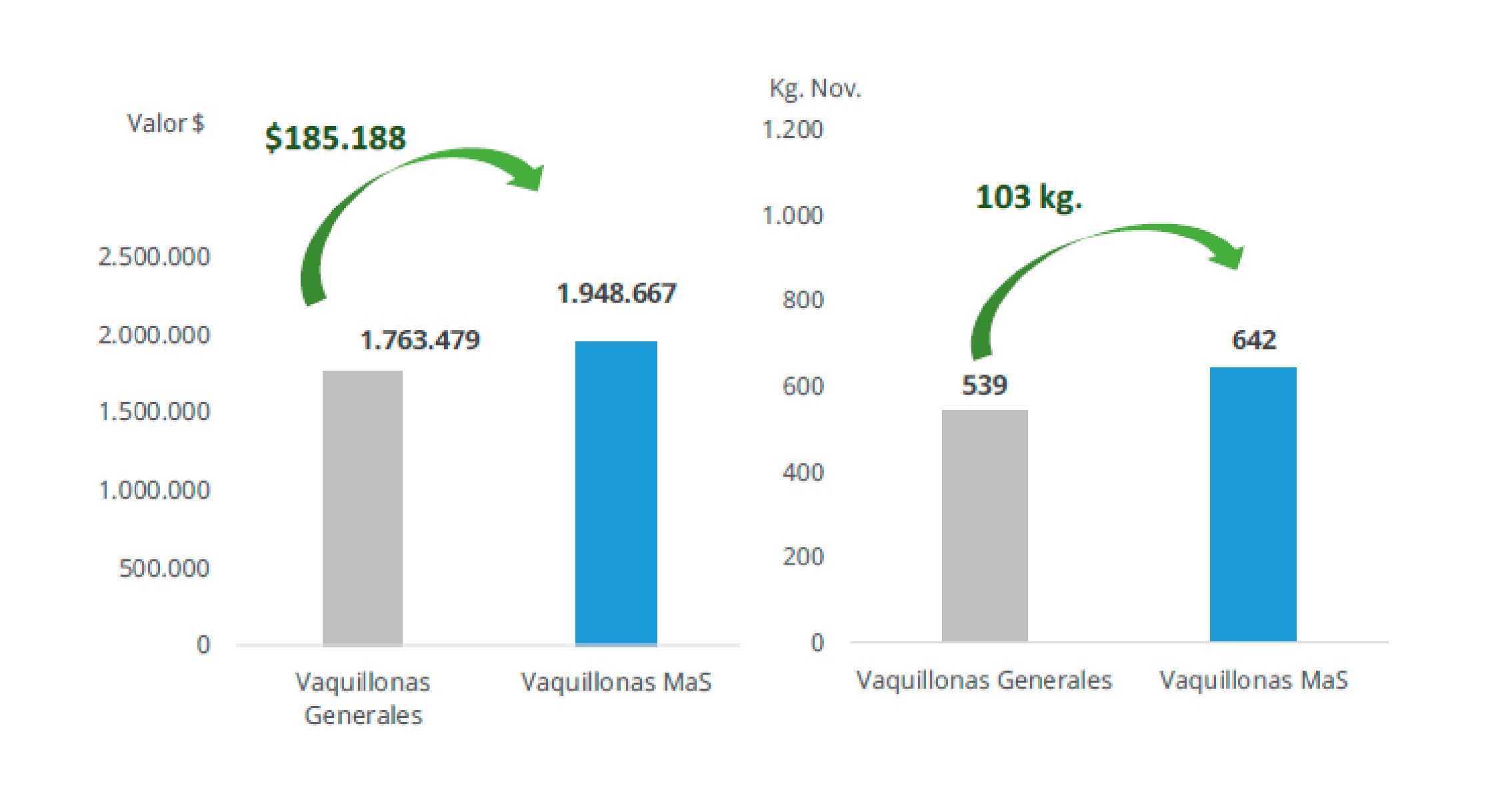 DIFERENCIAL DE PRECIOS ENTRE VAQUILLONA GENERAL Y MAS